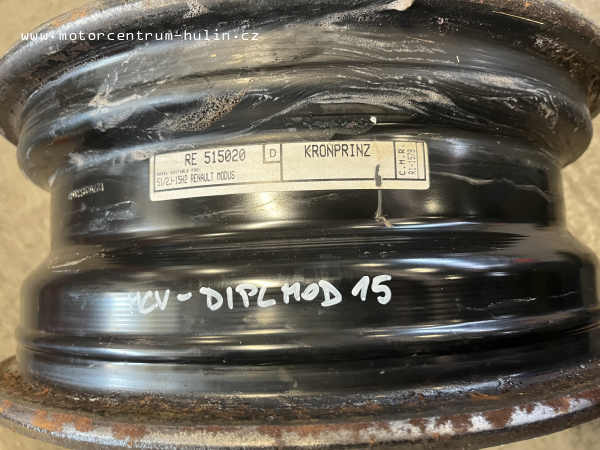 Použitý plechový disk KRONPRINZ 5 1/2Jx15H2, Renault Modus, 127028338037, MW FR, A5133, X388, ET43, RE 515020, rozteč 4x100mm, Středová díra 60mm,