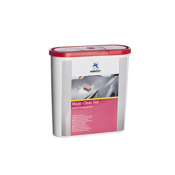 Červená čistící hmota Magic Clean odstraňuje bezpečně a šetrně extrémní nečistoty, hmyz, dehet, pryskyřice ze stromu, částečky železného prachu a usazeniny z lakovaných povrchů a skla. Hmota je dodávána v uzavíratelné krabičce. EAN 4034138907364 Obsah 200 g
