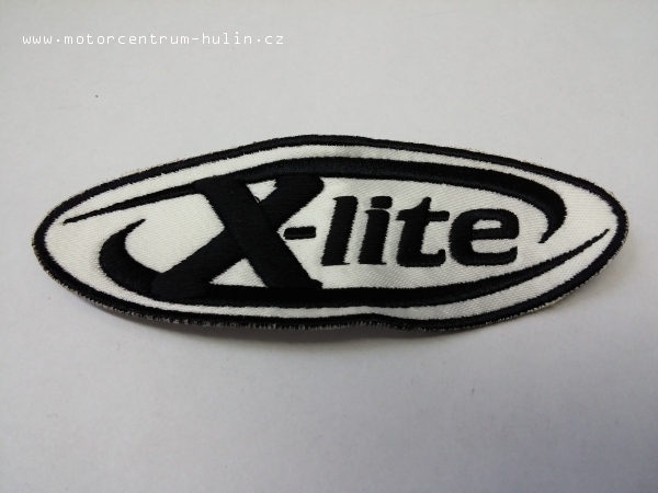 Nášivka oválného tvaru, černo-bílé barvy.Rozměry : 11,3 x 4,4 cm.